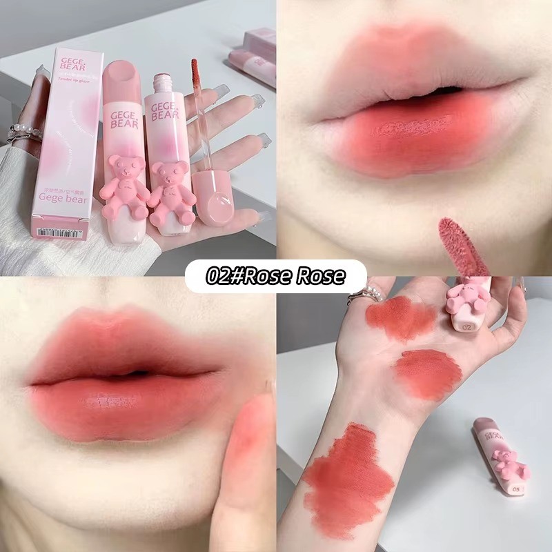رژلب مایع پودری خرسی Gege Bear مدل Tender Lip Glaze بسیار سبک بوده و سریع روی لب خشک میشود. به دلیل داشتن ویتامین E از خشک شدن لبها جلوگیری کرده و با افزایش رطوبت لبها از ترک خوردن آنها جلوگیری میکند.