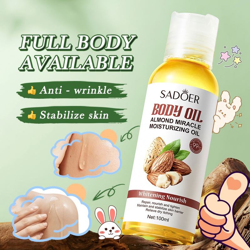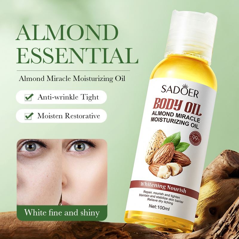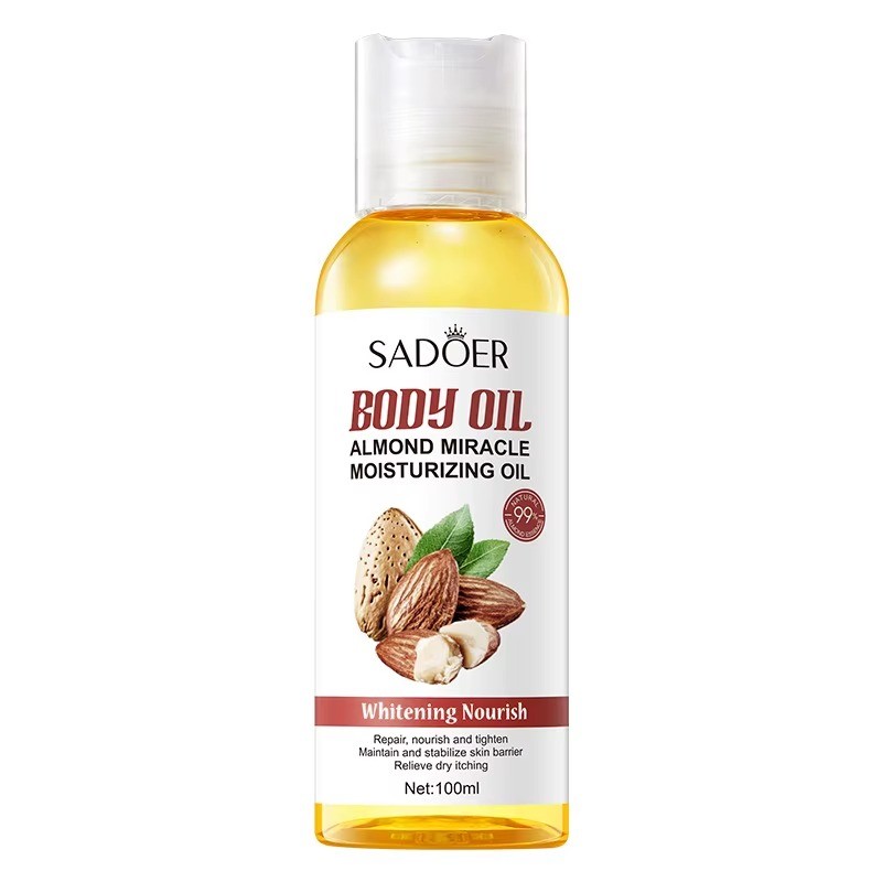 روغن روشن و مرطوب کننده صورت و بدن عصاره بادام سادور SADOER BODY OIL ALMOND MIRACLE MOISTURIZING OIL